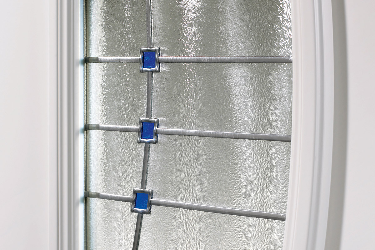 Bleiornamentik-Gläser sind mit beliebigen Motiven in nahezu jeder Form und Größe lieferbar und stellen eine kostengünstige Alternative zur echten Bleiverglasung dar. Daneben überzeugen die aus einer durchgehenden Scheibe gefertigten Glaselemente durch höhere Stabilität. Dabei wird die Trägerscheibe einseitig mit lichtbeständigen Farbfolien beschichtet. Beidseitig aufgeklebte schmale Bleistreifen betonen die Konturen der Farbfelder und verleihen der Motivscheibe die Anmutung einer bleiverglasten Scheibe.
